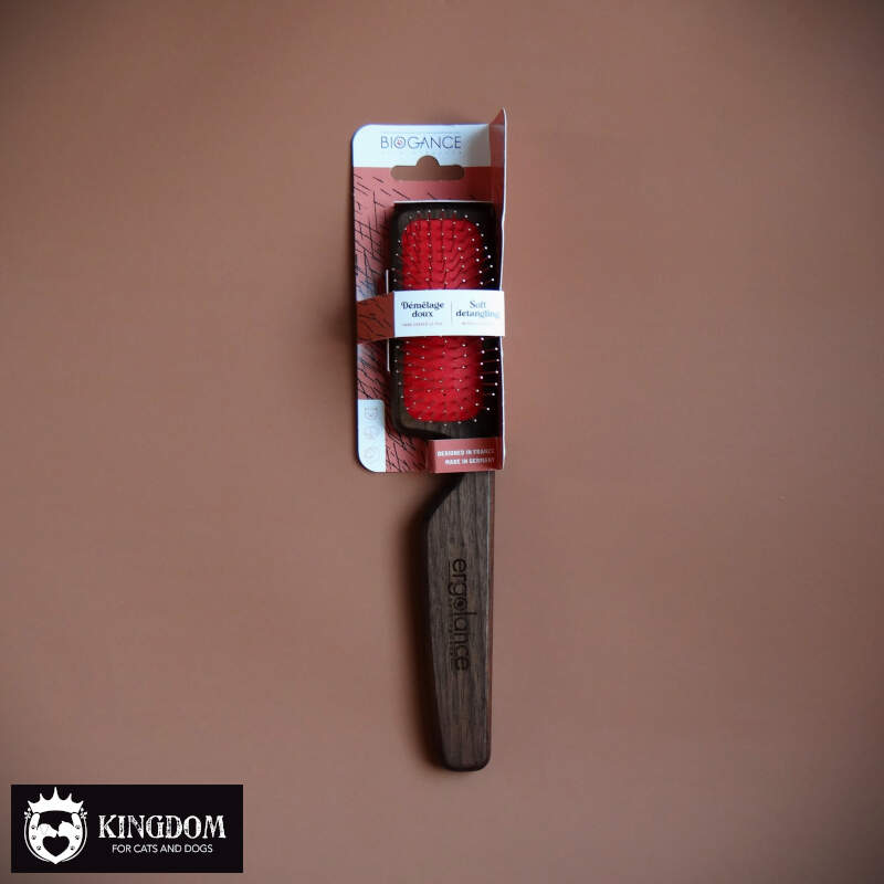 De Ergolance ontklittende borstel van Biogance is ontwikkeld voor zachte, efficiënte en diervriendelijke vachtverzorging.