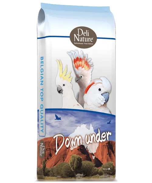 Deli Nature 21 Papegaaien Down Under is een unieke, uitgebalanceerde mengeling voor alle Australische Papegaaien en Kaketoes (m.u.v. Rose Kaketoes en Palmkaketoes). Met vitsen, mariendistel en kleinere zaadsoorten zoals kanariezaad, millet. Verrijkt met rozijntjes, appelstukjes, bananenschijfjes, wortelstukjes en chili pepers. Met geextrudeerde pellets voor extra vitaminen, aminozuren. Met grit en is verkrijgbaar in 15 kg.