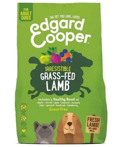 Edgard & Cooper Adult Vers Graslam Graanvrij 12 kg is een smakelijk, compleet droogvoer voor de hond, met vers graslam en een gezonde mix van fruit, groenten en kruiden. Een zeer compleet voer voor jouw hond met een heerlijke smaak! Dit voer is gemaakt volgens graanvrij recept met vers graslam, dus zonder gedroogd en gedehydreerd vlees, en van gelukkigere lammetjes! Het voer is rijk aan hoogwaardige eiwitten en aminozuren en het bevat naast vers vlees een mix van fruit, groenten en kruiden voor een extra boost. De aanwezigheid van prebiotica zorgt voor een gezonde darmwerking en bovendien is het voer hypoallergeen, dus geschikt voor honden met een gevoelige maag! Deze brokken zijn langzaam gebakken zodat er zoveel mogelijk voedingsstoffen én smaak behouden zijn gebleven.
