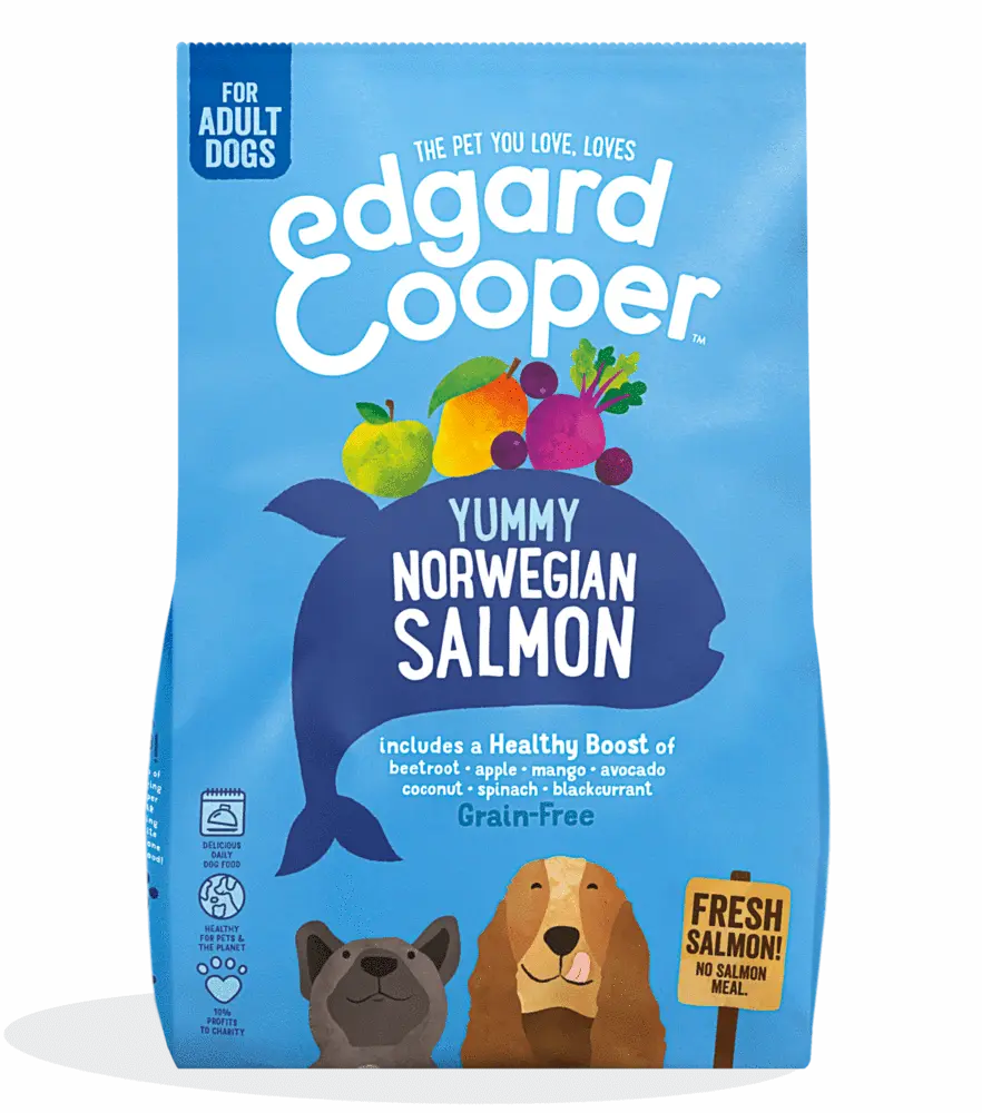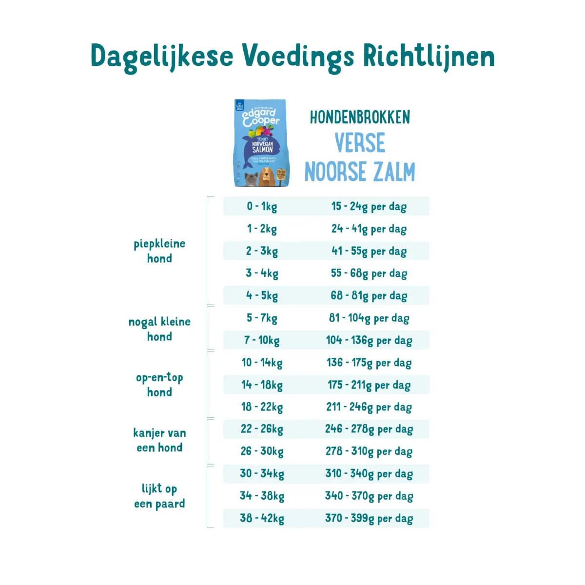 Dit recept met véél verse Noorse zalm (en géén gedroogde of gedehydrateerd zalm) zit vol omega 3 en hoogwaardige eiwitten. En prebiotica voor een gezonde darmflora. Deze brokken zijn graanvrij en hypoallergeen, ideaal dus voor gevoelige maagjes. Al onze recepten bevatten een supergezonde mix van fruit en groenten. En lekkere kruiden en botanicals voor een extra boost. Die fantastische blend bakken we langzaam: zo blijft al dat goede perfect bewaard.