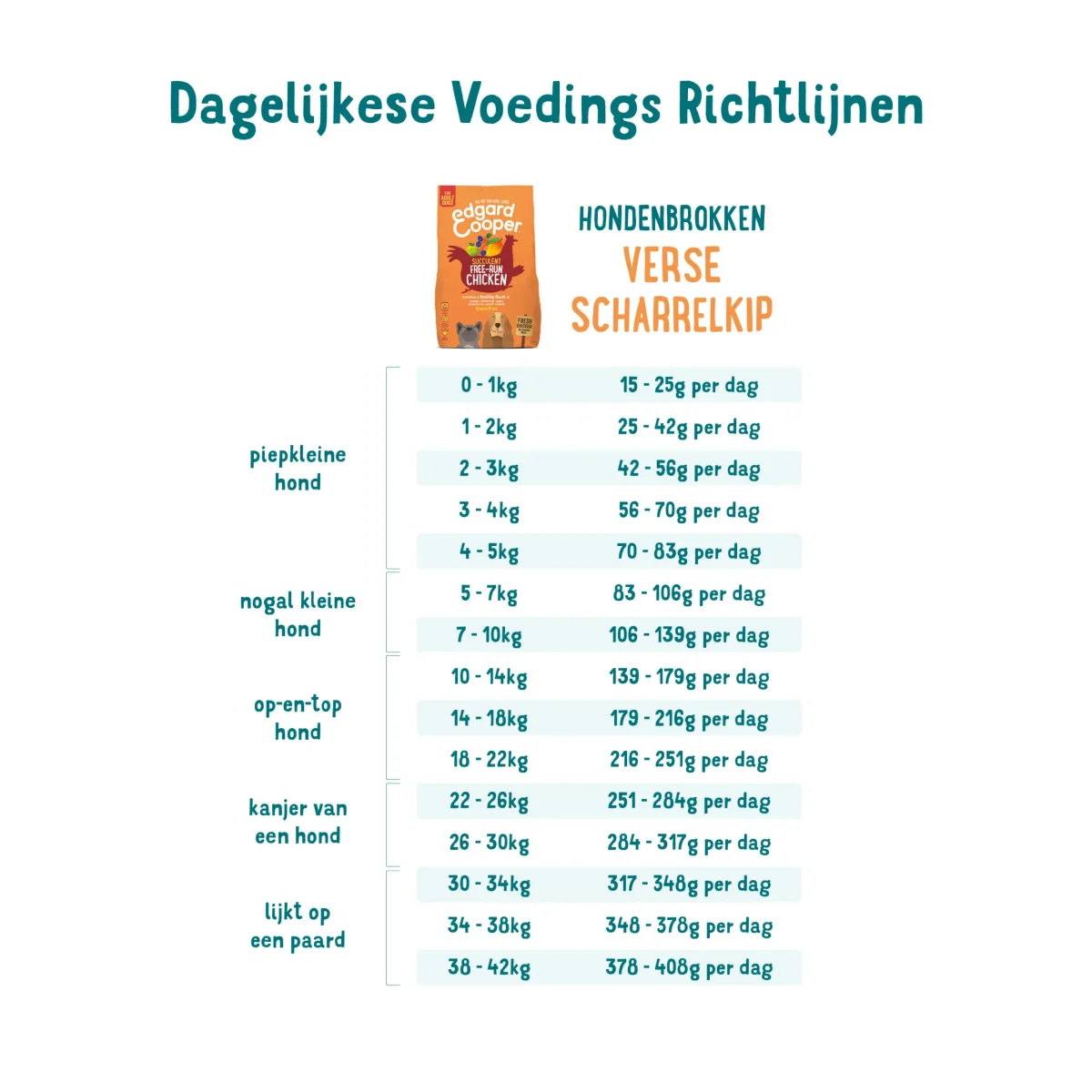 Dit graanvrije recept met heerlijk verse scharrelkip (zonder gedroogd of gedehydrateerd vlees) is caloriearm en rijk aan hoogwaardige eiwitten. Er zit ook prebiotica in voor een gezonde darmflora. Ideaal dus voor gevoelige maagjes. Al onze recepten bevatten een supergezonde mix van fruit en groenten. En lekkere kruiden en botanicals voor een extra boost. Die fantastische blend bakken we langzaam: zo blijft al dat goede perfect bewaard