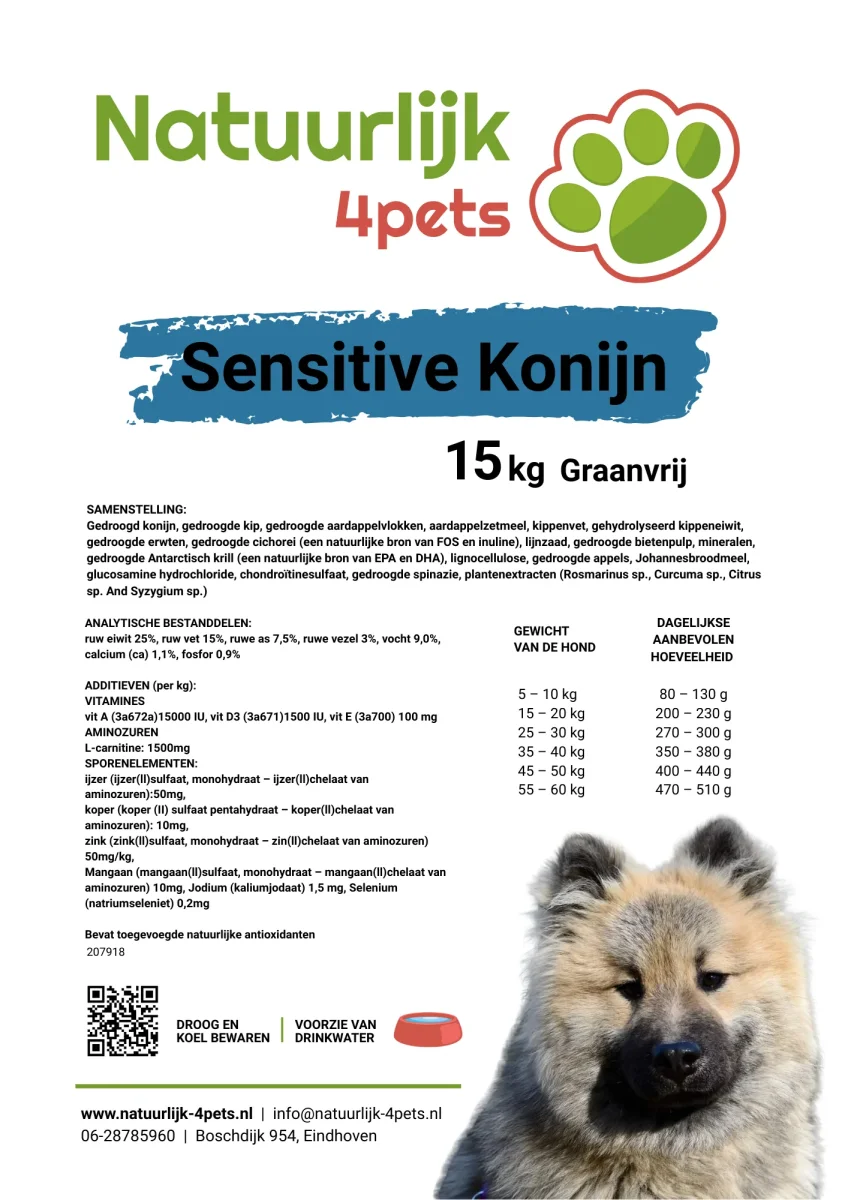 Verminderd het risico op allergische reacties dankzij konijn en aardappel als belangrijkste ingrediënten.