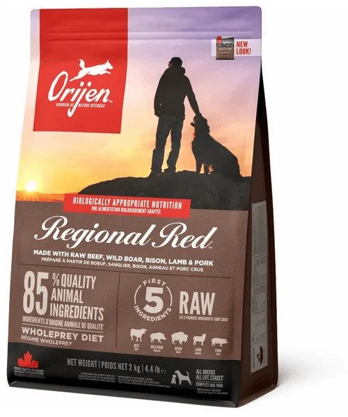 Net zoals de natuurlijke voeding is Orijen Regional Red rijk aan eiwitten van Angus rund, Wild-Zwijn, Bizon, Romney Lam en Yorkshire Varken, lokaal gefokt en dagelijks vers geleverd in verzorgende WholePrey™ verhoudingen. Met trots bereid in onze NorthStar® keukens, garandeert bekroonde Orijen je geliefde hond gezond, blij en sterk te houden. Lees onze ingrediënten en wij denken dat u het met ons eens zal zijn.