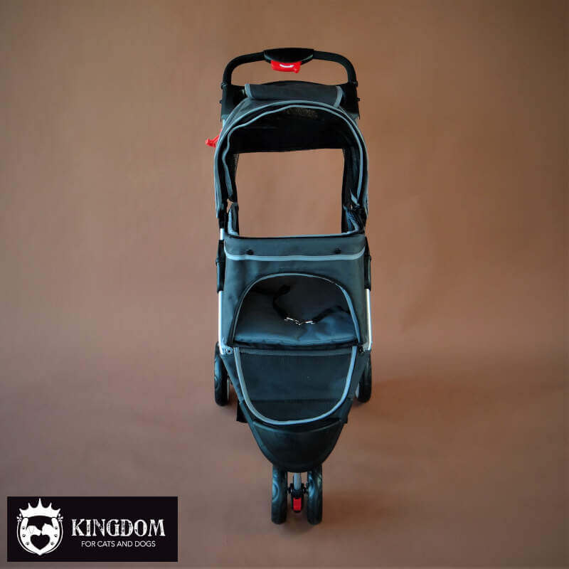 Met 2 veiligheidsriempjes waar je eventueel het tuigje van je dier aan vast kan zetten zodat je de kap open kan zetten. Met 3 wielen is deze pet buggy super wendbaar en doordat hij opklapbaar is kan je de buggy compact weg zetten. Laat je de buggy uitgeklapt staan, dan heb je grote kans dat hij ook als slaapplek wordt gebruikt.