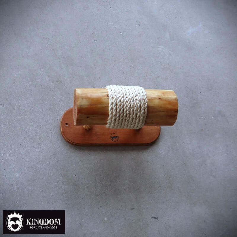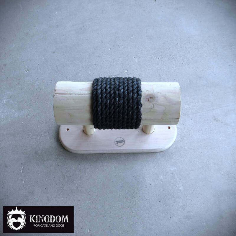 Om het sisal touw goed op zijn plek te houden is de eerste en laatste rij verzonken in het hout gelegd. Door de groef waar het sisal touw in ligt kan het niet verschuiven op het moment dat je kat er met zijn gewicht aan hangt. Het begin en eind punt van het touw zijn volledig in de stam weg gewerkt.