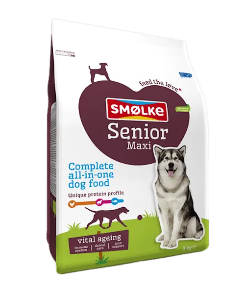 Smolke Senior Maxi is een compleet Alles-in-één hondenvoer met natuurlijke ingrediënten dat jouw senior hond helpt bij het vitaal ouder worden.