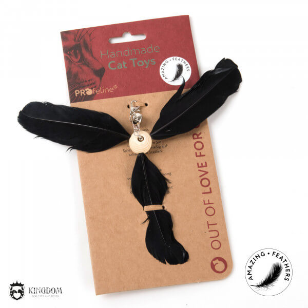 De propellerhanger bestaat uit een houten knikker met rondom 3 veren evenwijdig verdeeld. Bovenin de houten knikker zit een roterend draaischarnier, een karabijnhaak en een belletje. Hierdoor verkrijgt de propeller een echt draaiend effect zodra je deze aan een hengel heen en weer door de lucht zwiert. De spannende jacht op de draaiende propeller kan beginnen – puur plezier voor katten en mensen.